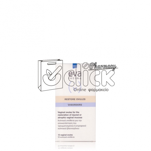 Το Eva Restore είναι επουλωτικός παράγοντας του κολπικού βλεννογόνου με τη μορφή κολπικών υπόθετων για την ενίσχυση και επιτάχυνση της επούλωσης του ατροφικού ή τραυματισμένου κολπικού βλεννογόνου, την ρύθμιση του κολπικού pH στις φυσιολογικές όξινες τιμές, την ενίσχυση της φυσιολογικής χλωρίδας του κόλπου και την ανακούφιση των συμπτωμάτων του ερεθισμού και της ερυθρότητας