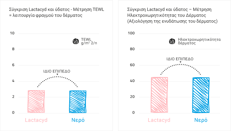 Δοκιμασία διαδερμικής απώλειας ύδατος (TEWL) – Πραγματοποιήθηκαν μετρήσεις προκειμένου να συγκριθεί η χρήση του Lactacyd Pharma Sensitive έναντι του νερού