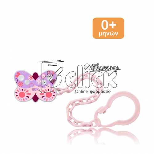 NUK Αλυσίδα για Πιπίλες με Κρίκο 0+ - Ροζ Πεταλούδα