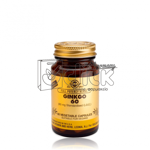 Το Ginkgo Biloba 60 της Solgar είναι ένα ενισχυμένο φυτικό εκχύλισμα, το οποίο συμβάλει στην βελτίωση της κυκλοφορίας, ειδικά του εγκεφάλου και είναι χρήσιμο σε περιπτώσεις αδύνατης μνήμης, κατάθλιψης, απώλειας εγρήγορσης, εμβοών, κρύων άκρων και γεροντικής άνοιας. Επίσης το Ginkgo Biloba 60 παρουσιάζει αντιαλλεργικές ιδιότητες.