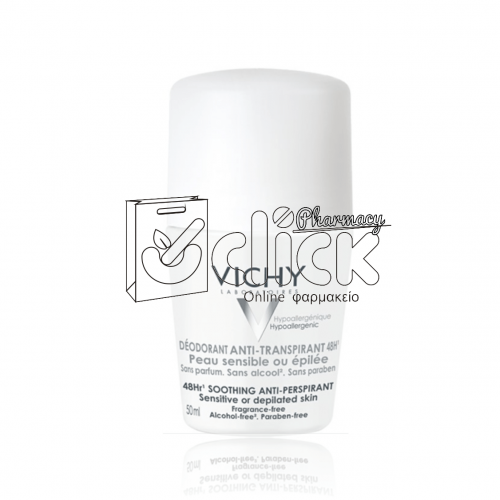 VICHY Deodorant 48ωρη Αποσμητική Φροντίδα Roll-on για Ευαίσθητες Επιδερμίδες 50ml